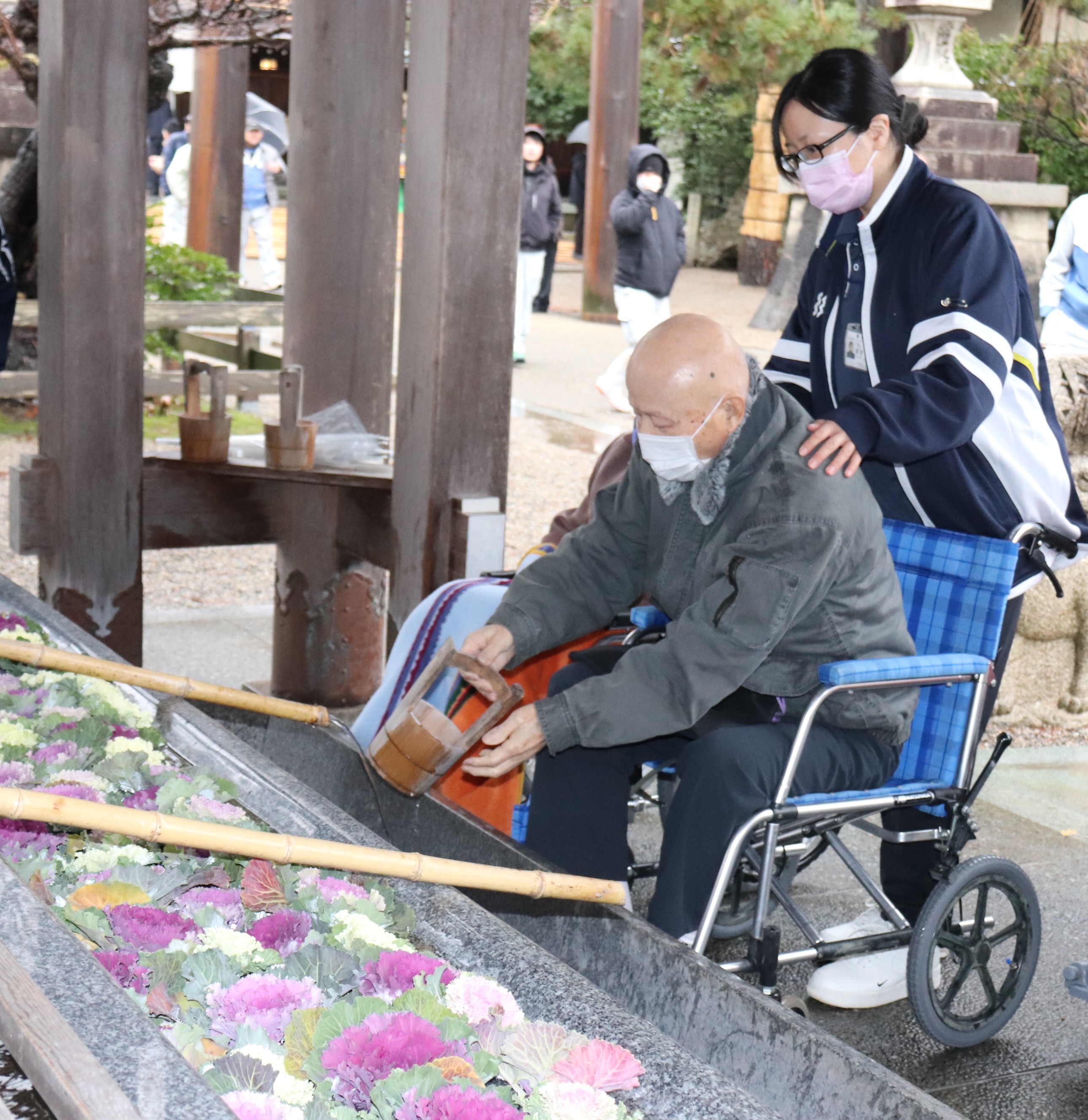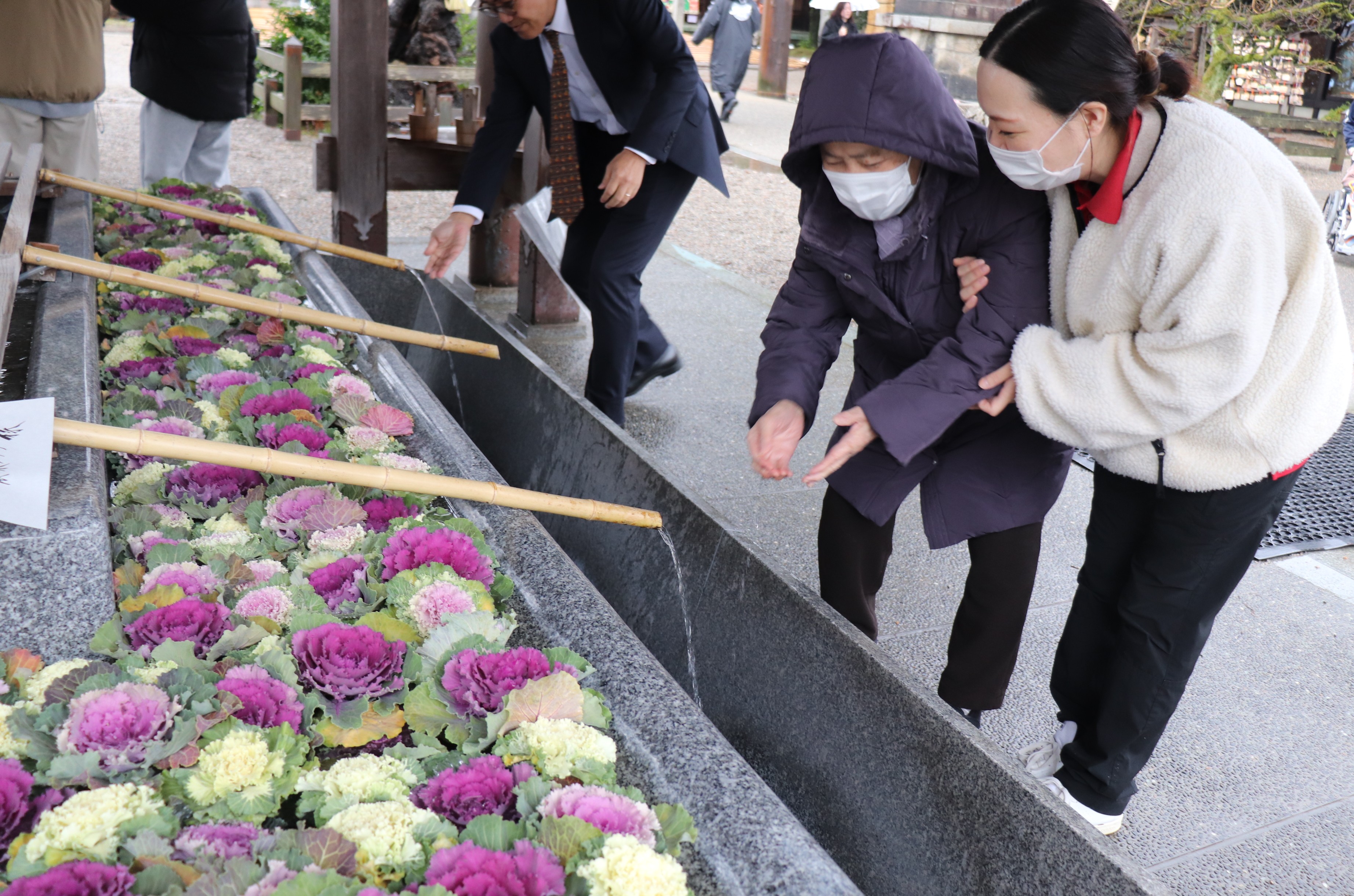 手水舎はお正月ver.で葉牡丹が敷き詰められておりとてもキレイでした(*^^*)