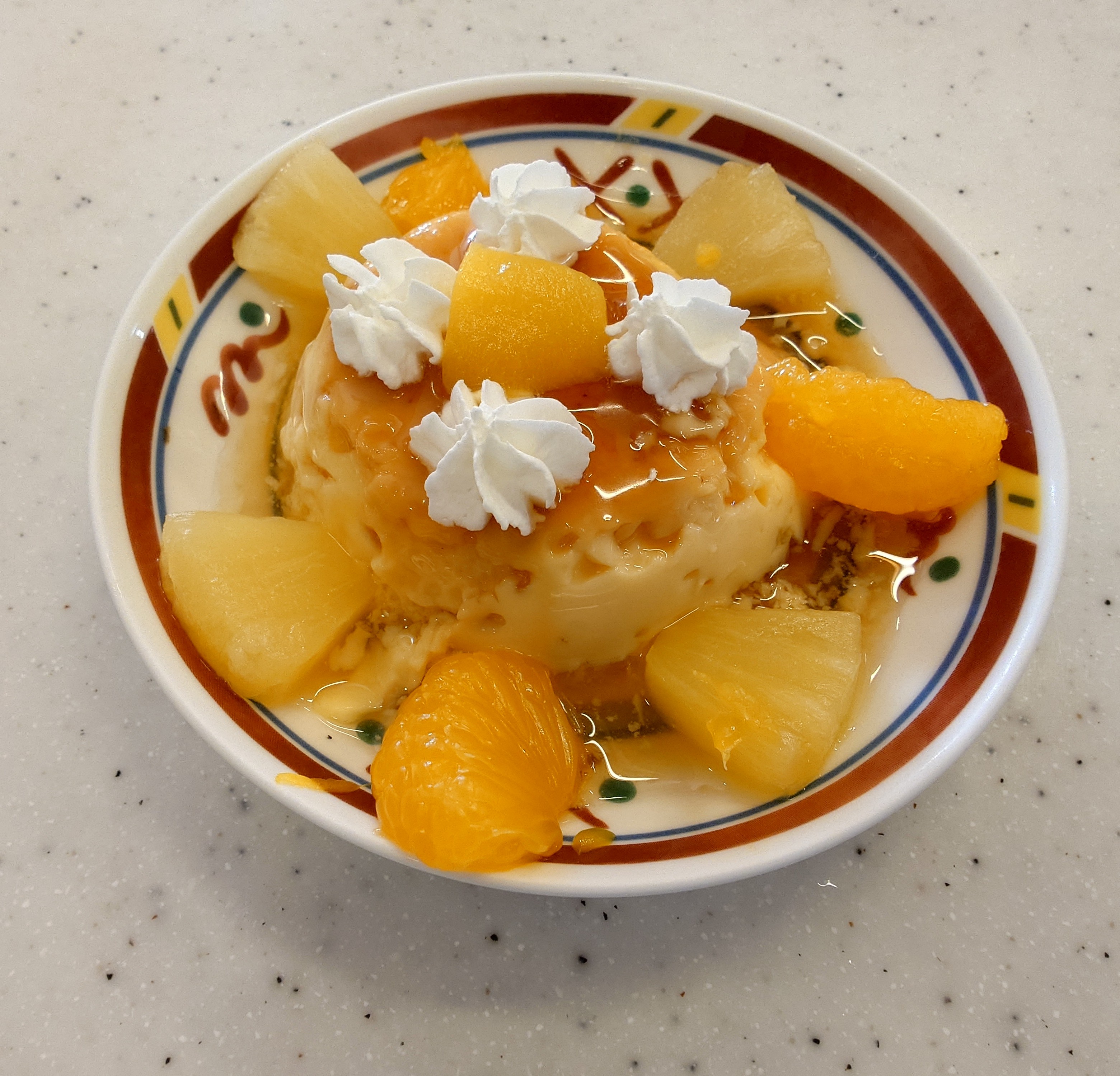 プリンに好きな果物とホイップクリームをデコレーショーン(((o(*゚▽゚*)o)))