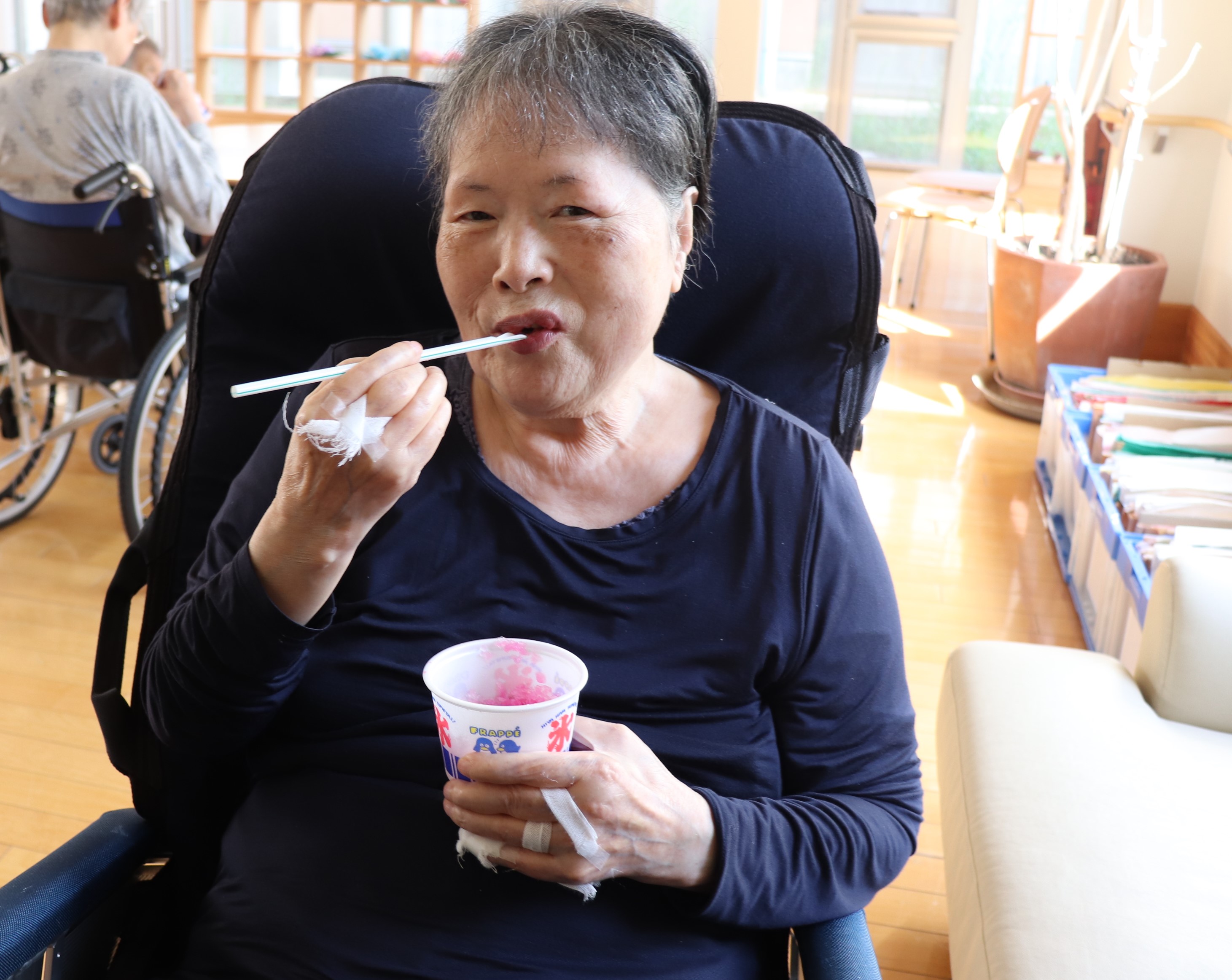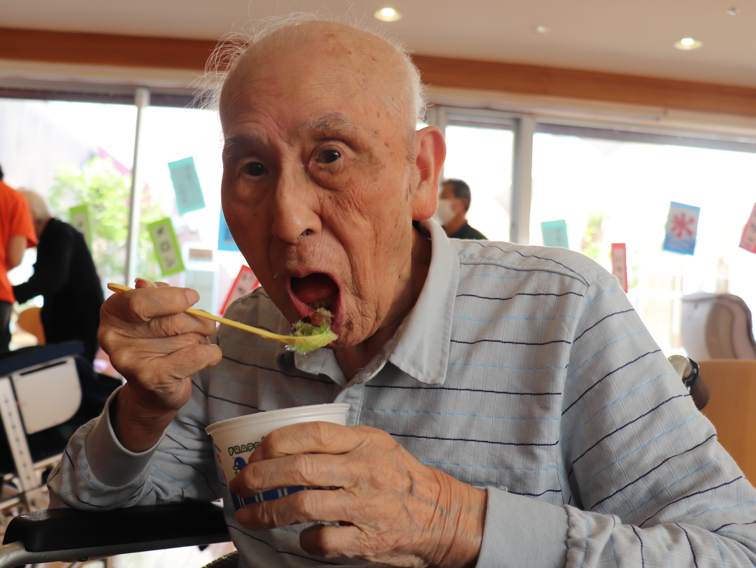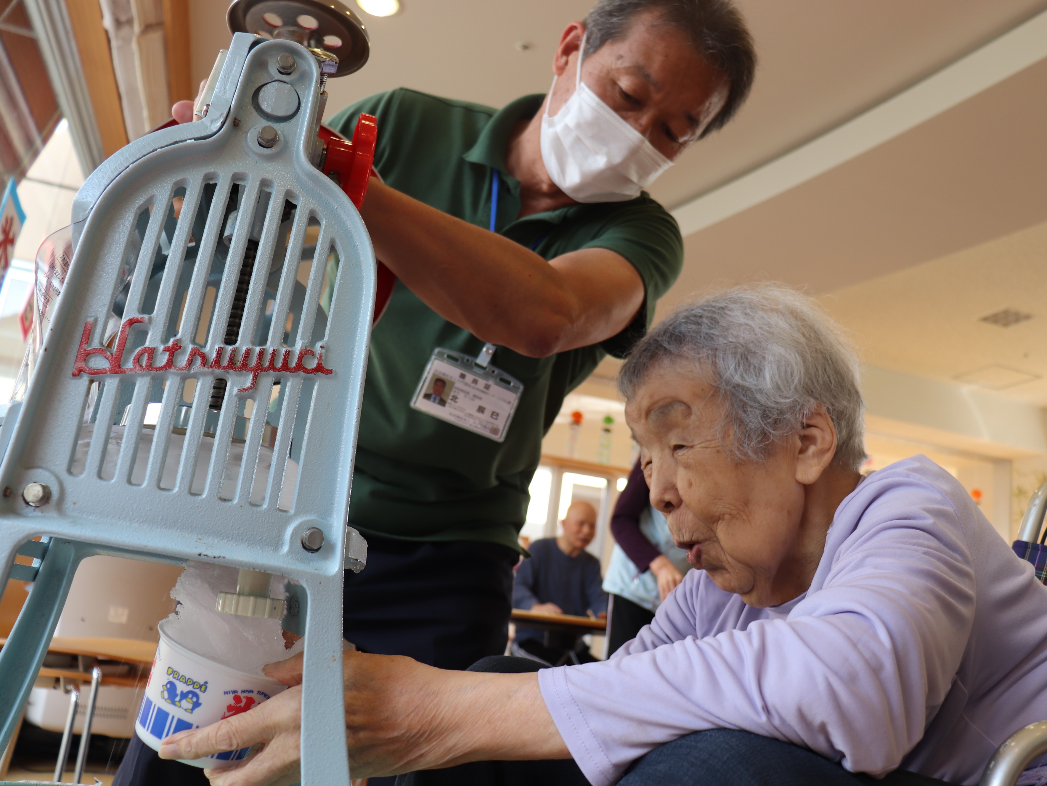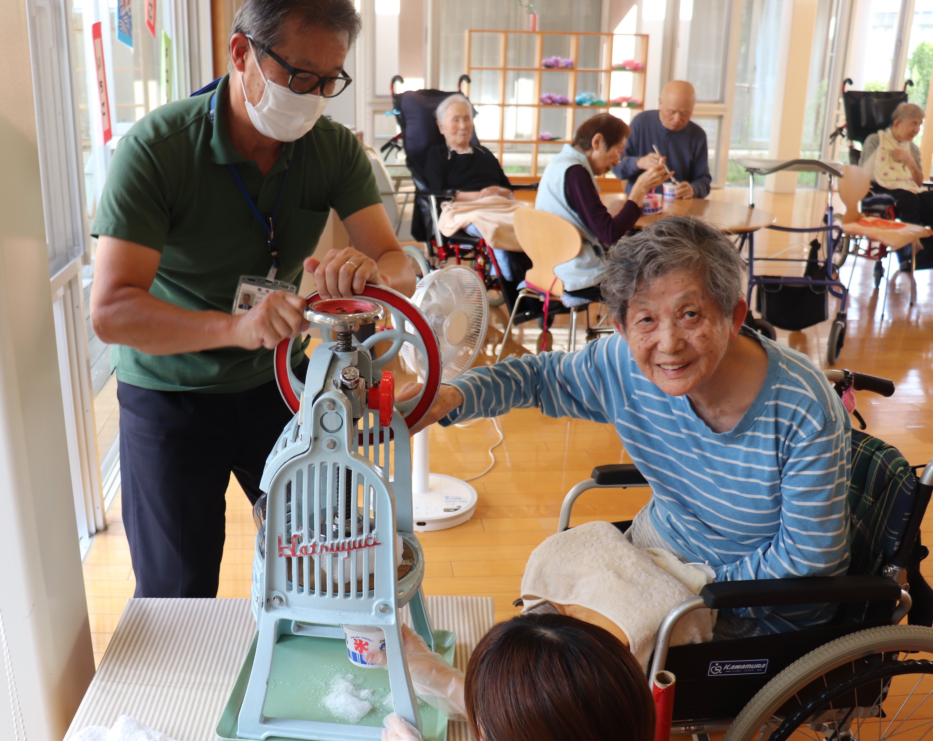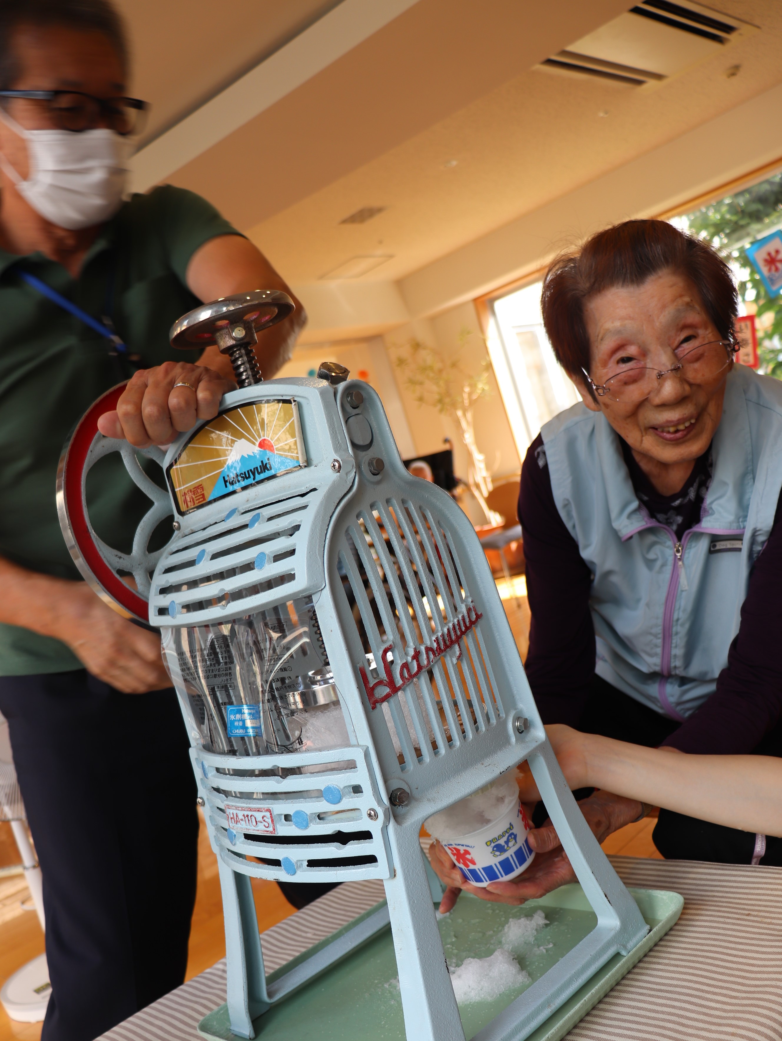 かき氷機を回して氷を削れる方は、今年もご自分でチャレンジしていただきました💪