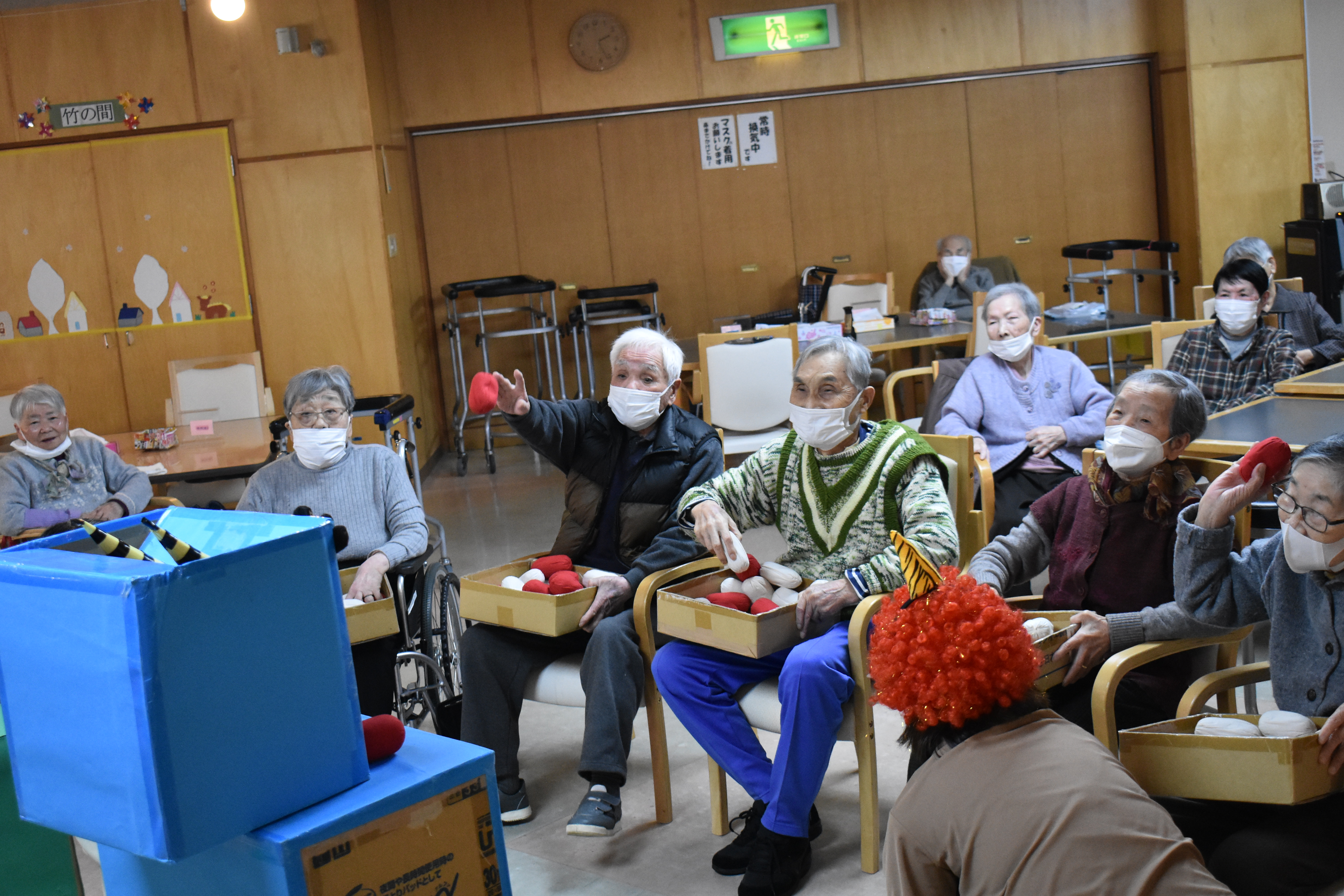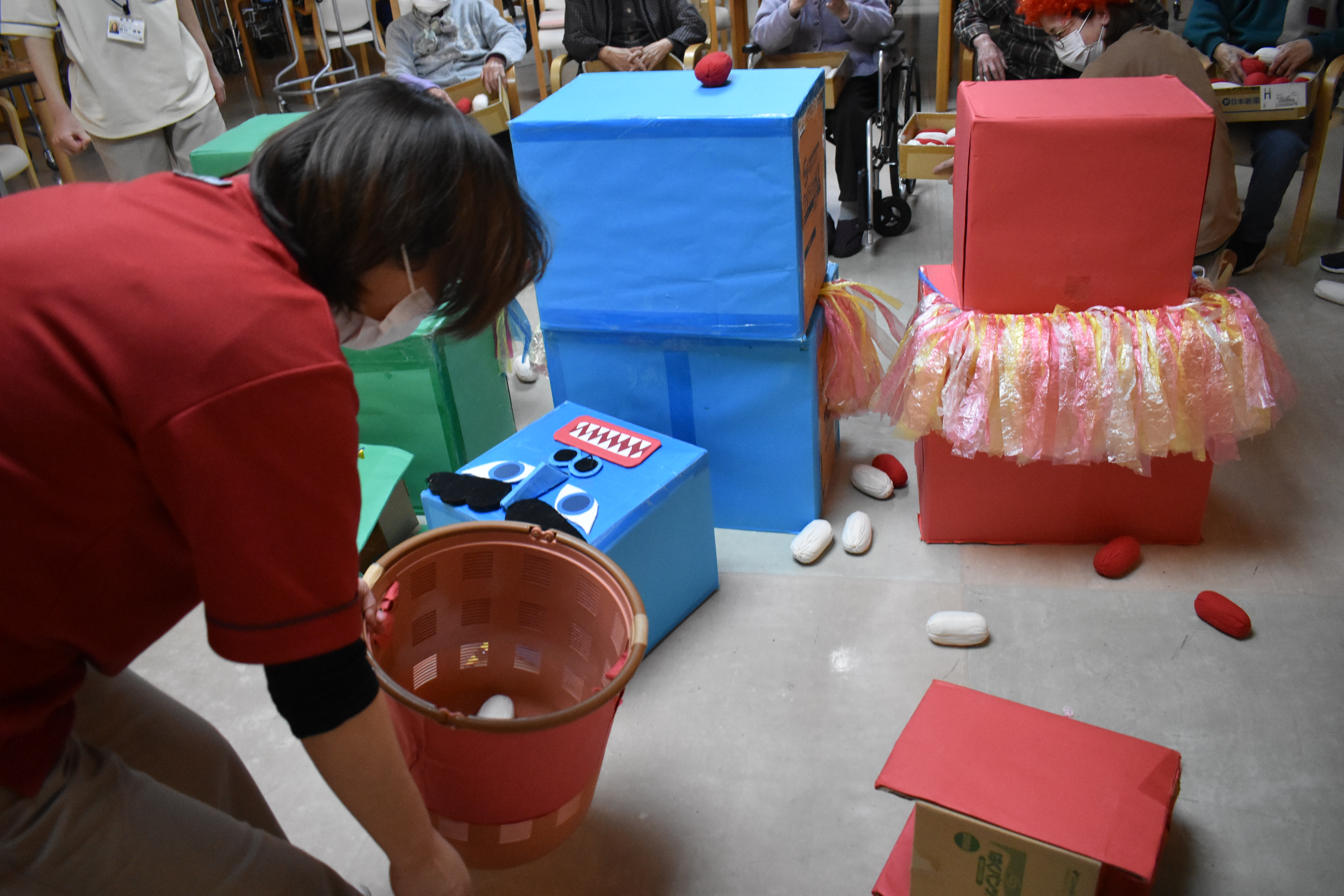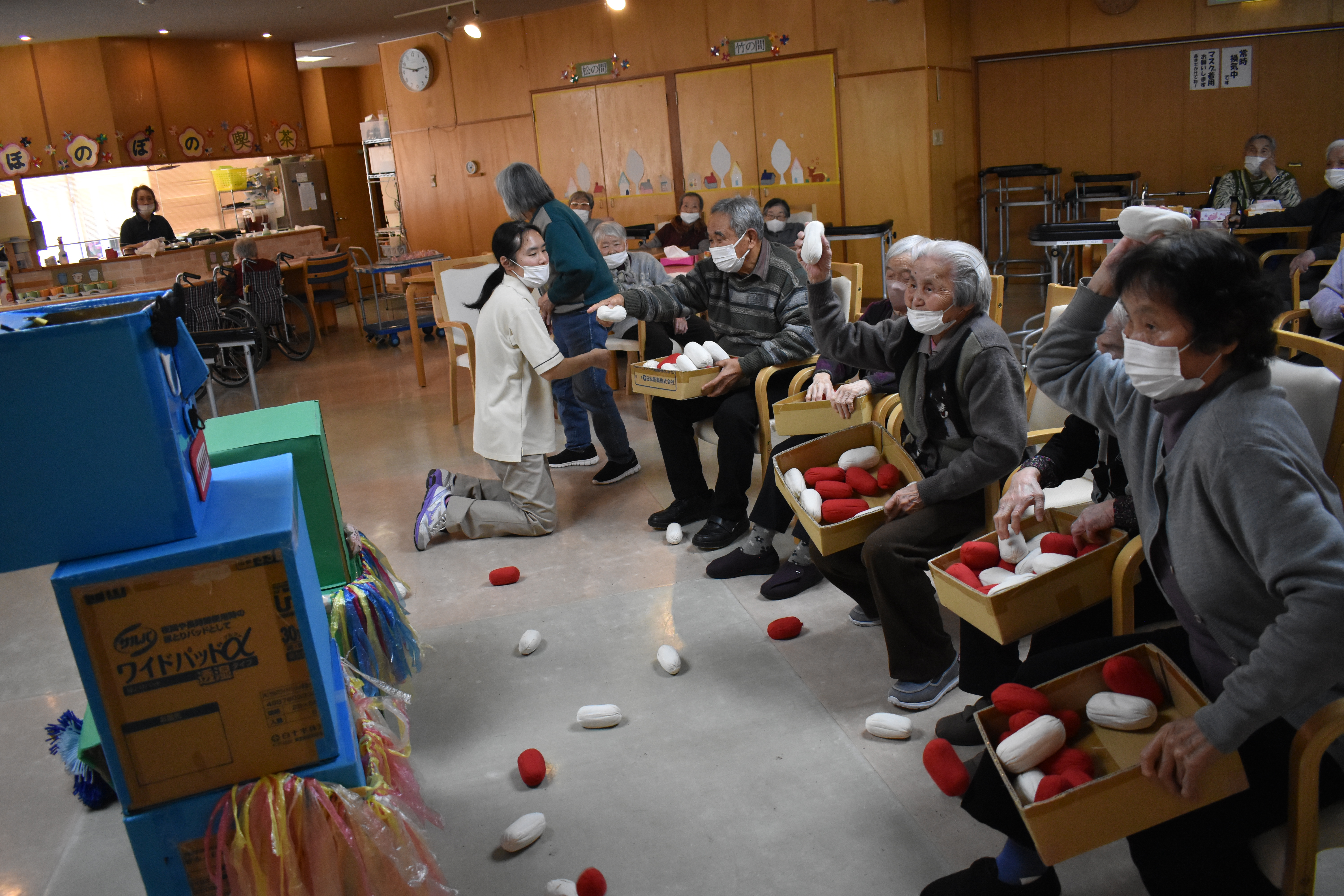 再度利用者様に紅白玉を持って頂き鬼に投げてもらいました‼