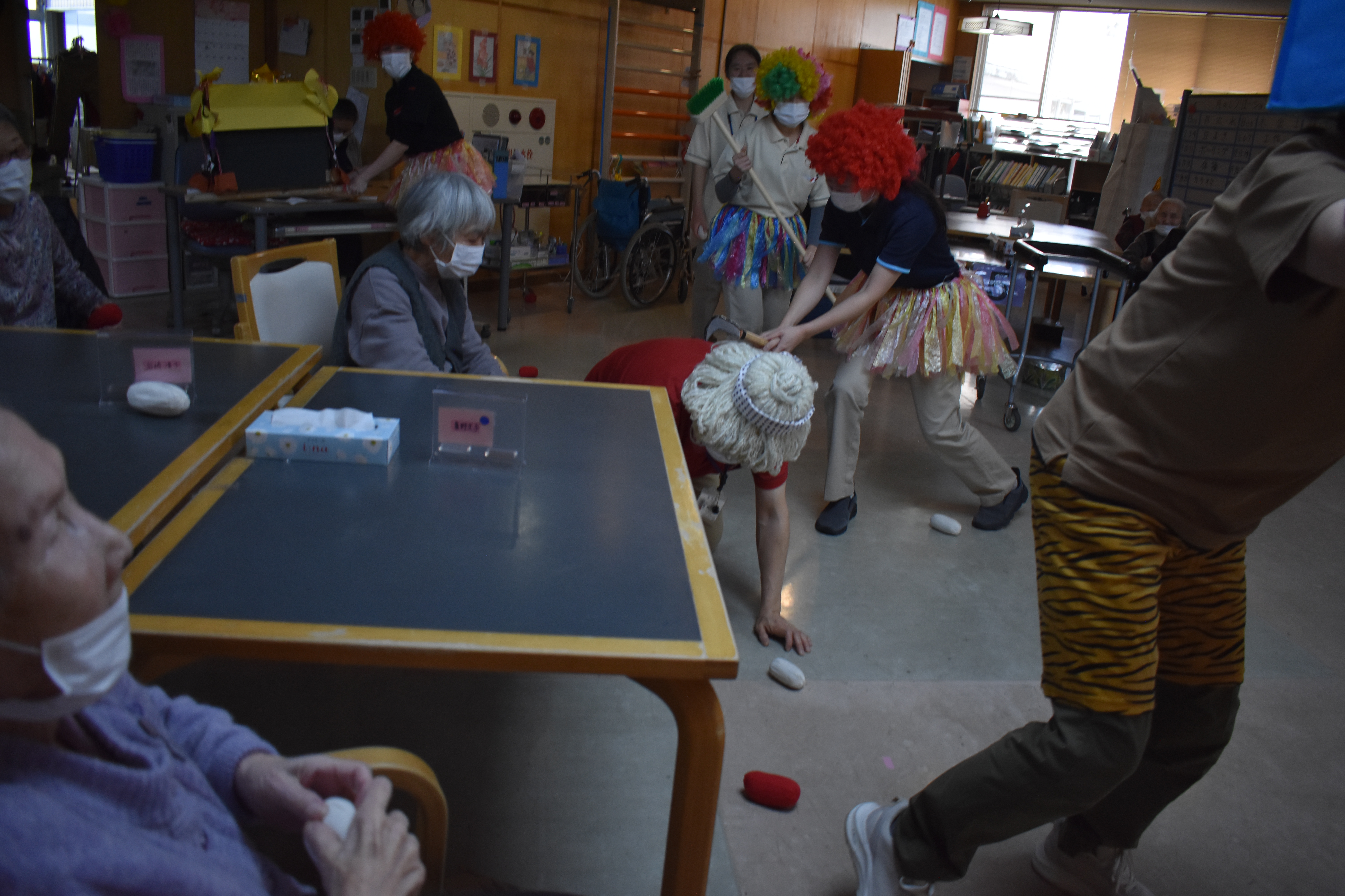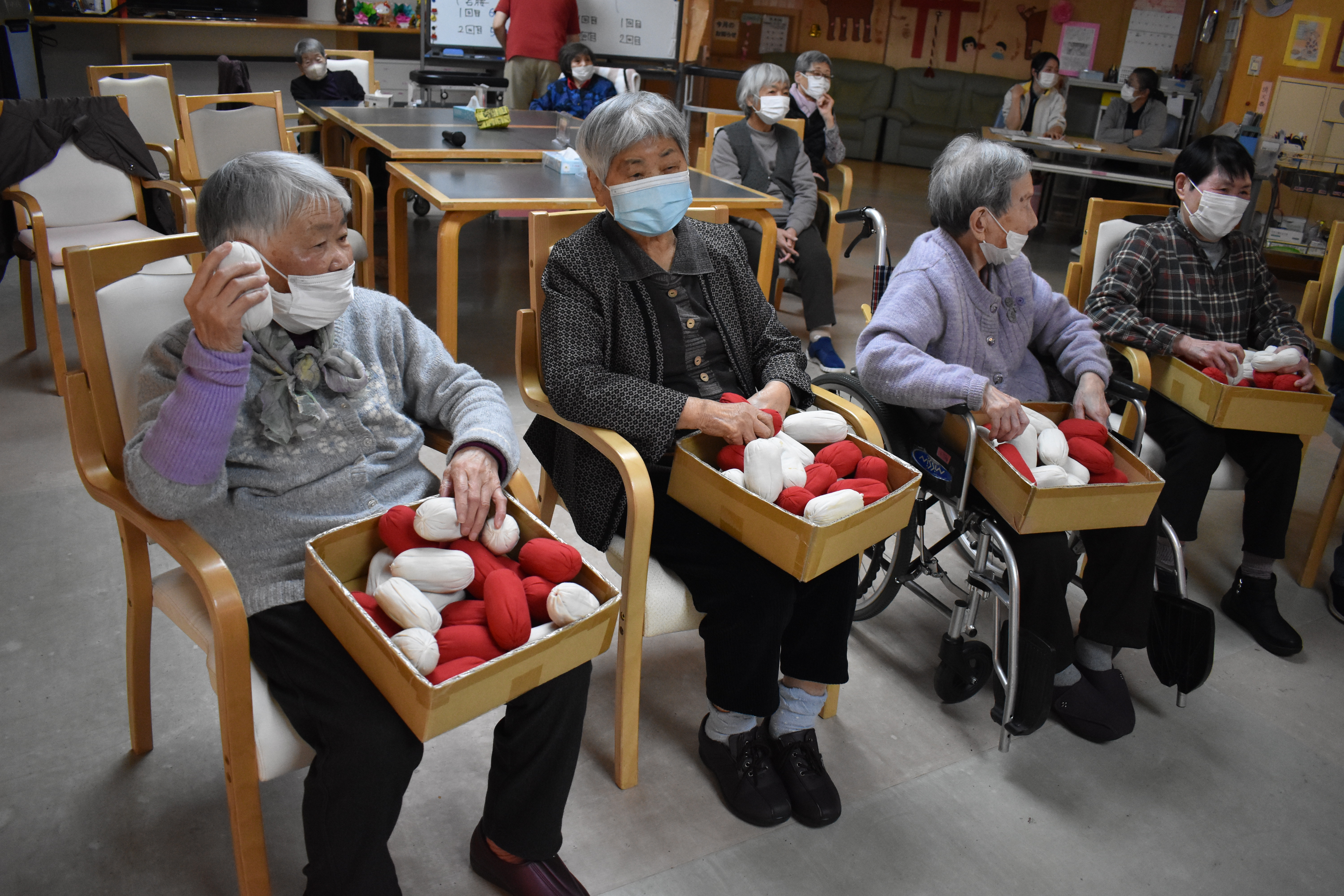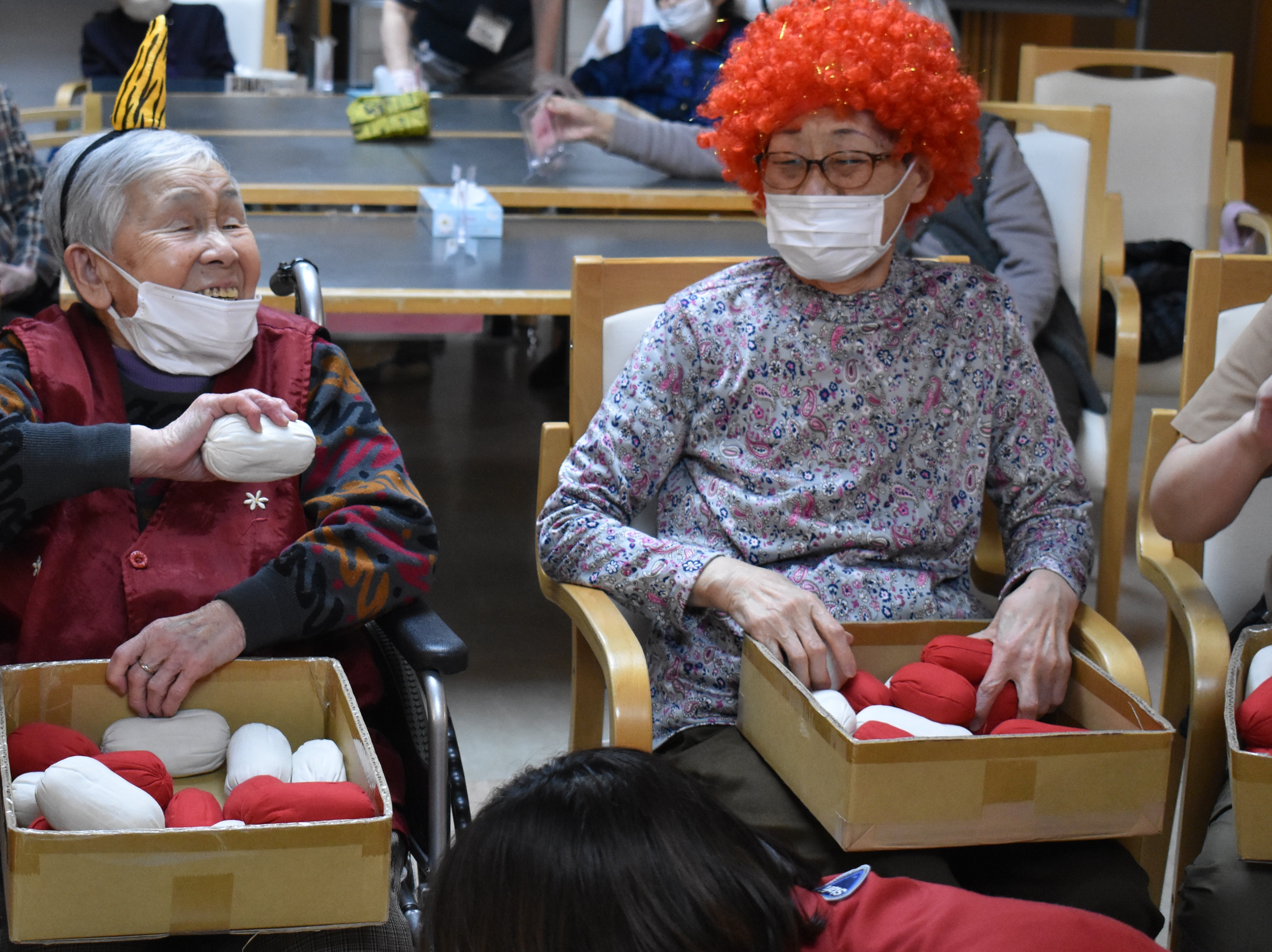 再度利用者様に紅白玉を持って頂き鬼に投げてもらいました‼